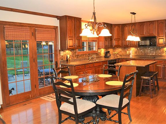 Stately full brick 4bd,4bath 2 story positioned on plush 1 acre lot.This lovely home offers an elegant master suite,stunning eat-in kitchen w/granite,tiled back splash,hardwood flooring, formal dining room,brick fireplace,study,in-home office,1st floor laundry & more.Finished lower level offers a private entry,full kitchen, living room w/fireplace,full bath,garage & space for up to 2 bedrooms. The back of the property has an additional 16x24 detached garage, 10x 15 shed and separate driveway.
