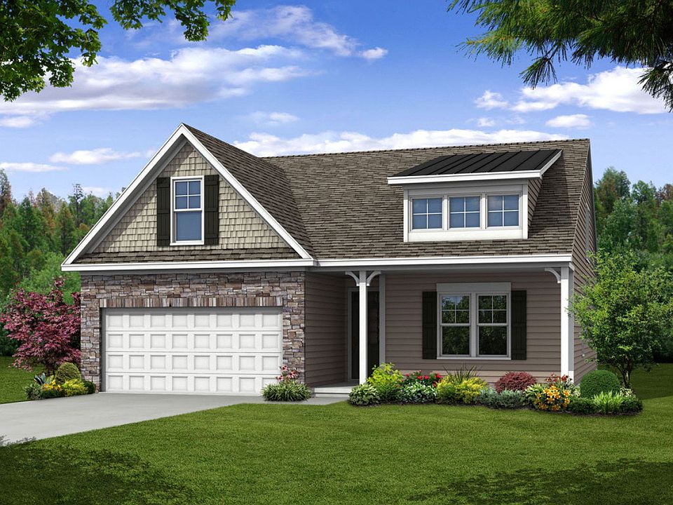 The Stanley is a cozy ranch style home with a cottage feel. It features three bedrooms all with walk in closets two full baths open kitchen dining area and family room and covered rear patio.