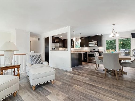 Private and Peaceful! The bright, open and spacious floor plan is just the beginning to what this beautiful home has to offer. Located on a table top level yard, you will enjoy the quiet, relaxing surroundings. The entry offers new ceramic tile and banister. The inviting Living rm radiates hospitality and charm with a new Pella bay window, crown molding, base board and luxury vinyl flooring. The Kitchen/Dining rm will be the gathering room and will host mealtime to summer parties to holiday functions. Any cook will love the updated kitchen with an abundance of cabinets, large island, luxury vinyl floor and new Pella window. There is a sliding glass door which leads to the new deck, perfect for relaxing or entertaining. The recently finished lower level Gameroom was designed for generous space and flexibility for your furnishings offering a new Pella door to the over sized patio. The newly finished laundry room offers an abundance of storage. New Furnace and AC. fenced in yard
