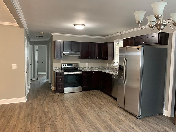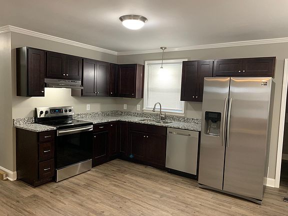 Single family 3 BR home on a cul-de-sac with a 2 car detached garage and fenced in backyard. Totally renovated ALL NEW: custom cabinets, granite countertop, stainless steel Samsung appliances stove, dishwasher, refrigerator w/ ice maker, barn door, flooring, paint, central heat and a/c, blinds, bathtub/shower, concrete driveway and back patio, interior doors, and lighting.