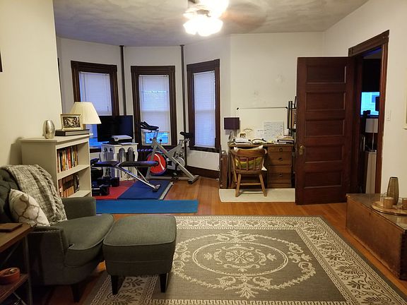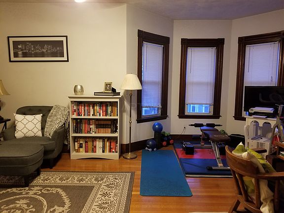 Davis Square / Ball Square / Tufts University area, 2 bedroom, 1 bathroom apartment. A short, 6-minute walk to Davis. Has in-unit laundry. Cats are negotiable. The eat-in kitchen has a gas range. Key amenities include a dining room, hardwood floors, high ceilings, a living room, a modern bath and a porch.