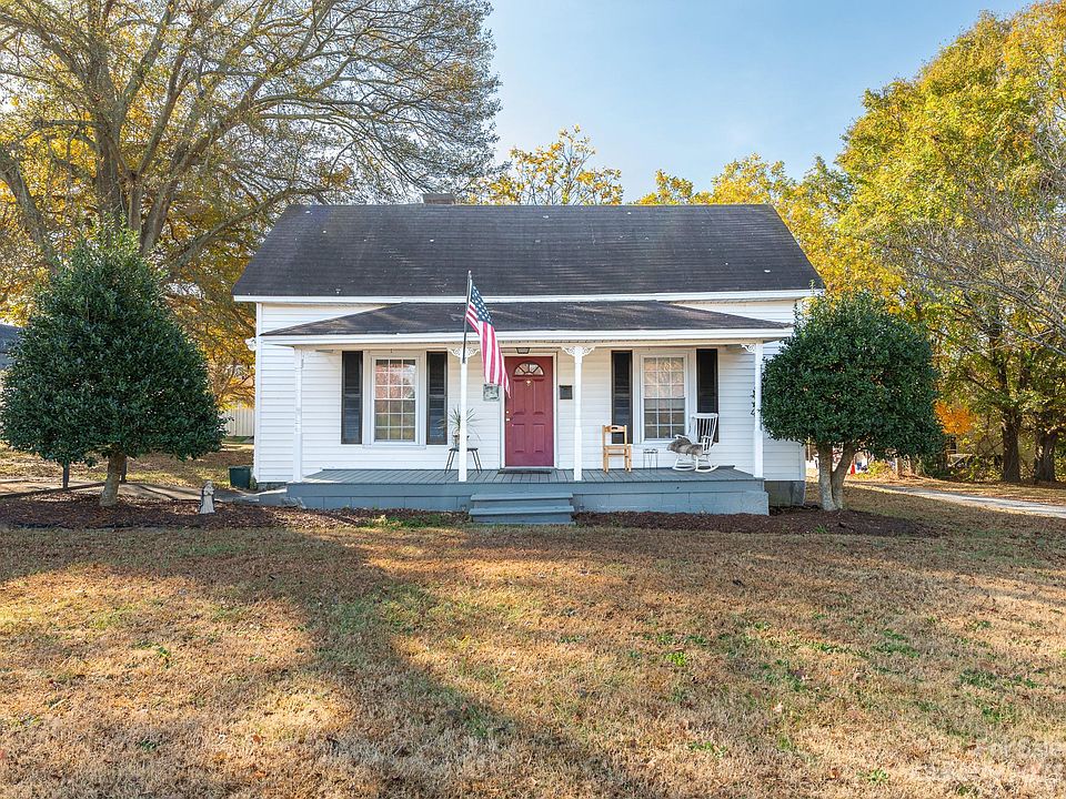 Charming cottage style home on corner lot just STEPS from main street Clover, SC. Home is ideal for starter family home or an investor looking to add to their rental portfolio. Property welcomes you in with covered front porch into bright living room. Original fireplace hearth creates a cozy historic feel with hardwood flooring adding to the charm. Large Primary bedroom off of living room with large window for natural light. Kitchen has large open space to include dining area. Second bedroom and full hall bath for additional space. Home could use a few updates to add your own touch and the location couldn't be better! Large yard area w/ Storage building to create your ideal entertainment space. HO HOA, covered parking & close to TONS of local shops & restaurants.