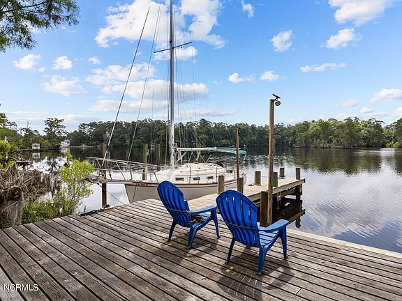 Desirable over 7-acre waterfront property on the Trent River in River Bend! Amazing property includes 3 parcels of park like land. Home features 4 bedrooms and 3 1/2 bathrooms with bonus room. 2 Master suites one on 1st floor other upstairs. Impressive kitchen has granite and SS appliance, master bath has heated floors, steam shower, jacuzzi tub. 46 X 12 screened porch overlooking large stone patio. Boat dock is wired 30amp service also has water. This is a must-see property with so many features. perfect for entertaining inside or out.