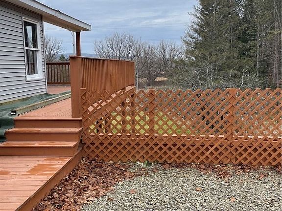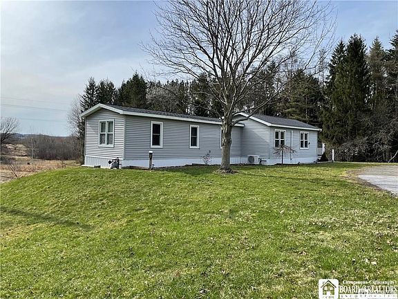 Step onto the Trex decking at the front door & enter into a large combination living room, dining room and kitchen area that is 21 x 31. This property has been redone with new drywall, electrical, insulation, laminate wood flooring, Corian countertops and all the appliances stay for your convenience. Off the back of the house is an addition that has the master bedroom with double closets and cathedral ceilings. French doors open up to a large covered back deck overlooking the 6.55 acres. Down the hallway past the kitchen you’ll find the utility room, combination bathroom and laundry and a second bedroom with a large closet. There is a split unit in the great room which offers heat and air conditioning. Property is across the street from the Cardinal Hills Golf Course. Close to 86 for easy access to Jamestown in Salamanca, a short drive to the Onoville Marina and Holiday Valley Ski Resort. This property is NOT for rent.