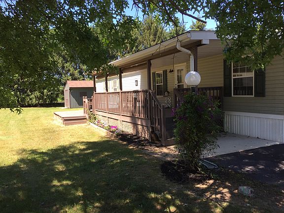 This gorgeously remodeled home has a large kitchen with lots of cabinets, counter space, breakfast bar, and stainless steel refrigerator. All new carpet, laminate, and bathroom flooring. Floor Plan offers a private master suite with separate walk in shower, garden tub, and walk in closet. Second bedroom and second bathroom. Large covered porch and deck, large insulated shed with electricity. All appliances stay including the stainless steel refrigerator, dishwasher, and a brand new washer. Furniture also for sale if interested. This home is located in an established, well maintained mobile home park.