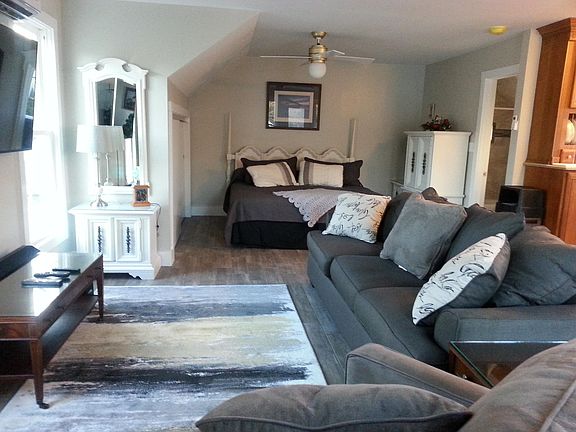 UPSCALE. King bedroom suite, showing by appt. -- Spectacular new loft. Designer kitchen, custom tile, granite counters. Full bath, full kitchen, furnished, all cook/bakeware, linens, w/dryer below. Electric, water. sewer, garbage and cable all for $125/mo. additional, paid with rent each month. FULLY FURNISHED Private, detached.