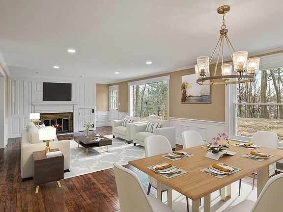 Welcome to 103 Cooper St, a stunning and private retreat nestled among the woods in Agawam on 1.3 acres of land. This beautifully designed 3 bed 2 bath home boasts brick exterior, set off from the road with a long and spacious driveway for convenience and seclusion. Inside, you'll find a spacious and open floor plan, brand new insulated windows, freshly finished wood floors, custom woodworking details, and three cozy fireplaces for warmth and comfort. The modern kitchen features stainless steel appliances, granite countertops, and custom-built cabinetry in a quaint dining area, perfect for any home chef. Large windows throughout the home provide ample natural lighting, highlighting the intricate details and enhancing the overall ambiance. Partially finished basement completes this home. Come and see this lovely home for yourself and experience the perfect blend of style, comfort, and privacy.