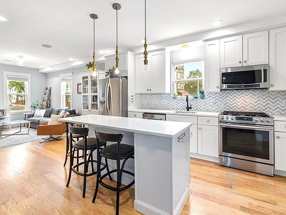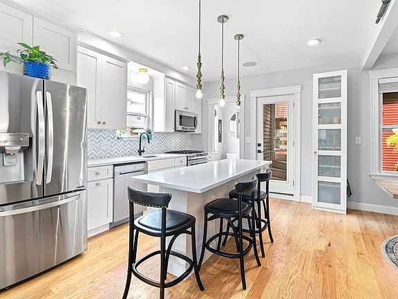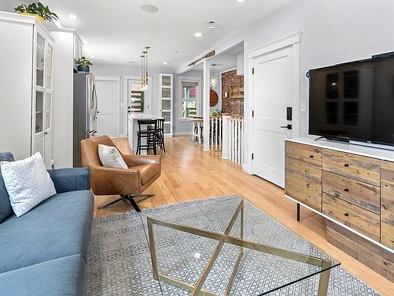 **Open house Cancelled - offer accepted** Meticulously renovated 2 bed/1.5 bath with private patio! Open and inviting living offers 3 sides of exposure, idyllic floorplan, and incredible natural light. Custom quartz kitchen features center island breakfast bar, hand-tiled backsplash, SS appliances, and adjacent exposed-brick formal dining. Large and dimensional livingroom is the perfect space to relax or entertain. Master bed provides oversized walk-in closet and bonus area for nursery. Frameless-glass marble shower and French Country vanity in spectacular designer bath. Spacious guest bedroom with double closets. Enjoy the seasons on your direct-access rear deck & enclosed bluestone patio! Central AC. Laundryroom in unit. Ample storage. A rare opportunity just steps to all-things Eastie! **3D Tour available**
