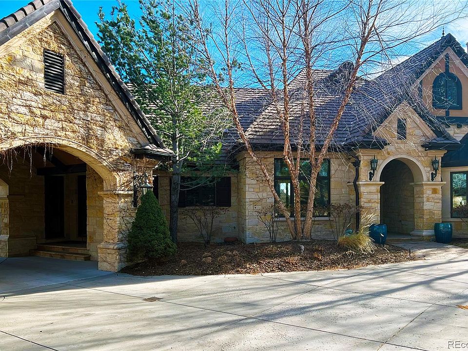 Situated on 1.5 acres and backing to the 1st green of the private and prestigious Castle Pines Golf Club, this spectacular home is updated with custom finishes throughout.