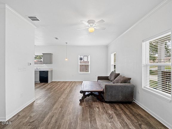 Welcome to this like-new 2-bedroom, 2-bathroom home located at 103 Country Place in beautiful Panama City Beach, Florida. Built in 2022 by Rebuild Northwest Florida, this stunning property boasts modern construction, high-quality building standards, and a fantastic location. The home sits on a spacious .32-acre corner lot on a quiet street, offering both privacy and ample outdoor space. Enjoy the convenience of being just minutes away from the beach, while benefiting from the peace of mind that comes with being outside the flood zone. Recent construction means lower insurance costs and energy-efficient utilities, making this an excellent choice for long-term savings. Designed with accessibility in mind, the home is ADA compliant and handicap accessible. It features wide thresholds, no carpet, and a roll-in shower in the master bathroom, ensuring comfort and ease of use for everyone. With no HOA in place, there are no restrictions on short-term rentals, making this property an ideal investment for an AirBNB or vacation rental. The modern, neutral color palette provides a perfect canvas for you to add your personal touch and create the home of your dreams.