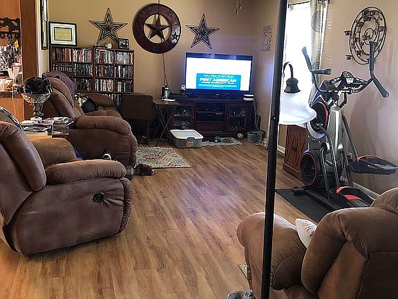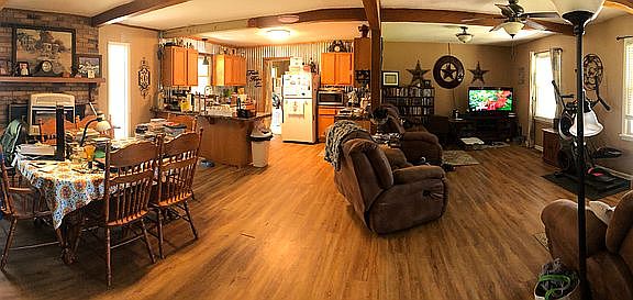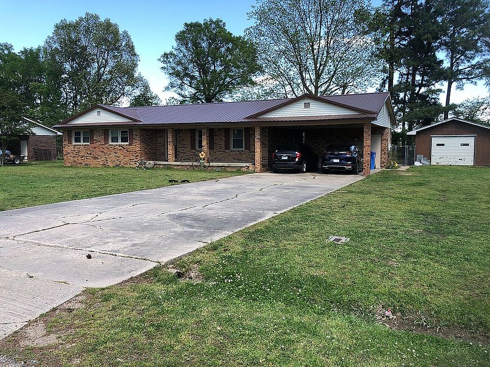 3 BR 2 BA home with open concept kitchen, dining, and living room. Brick with metal roof. Includes shop building with office / She Shed! Large fenced back yard.