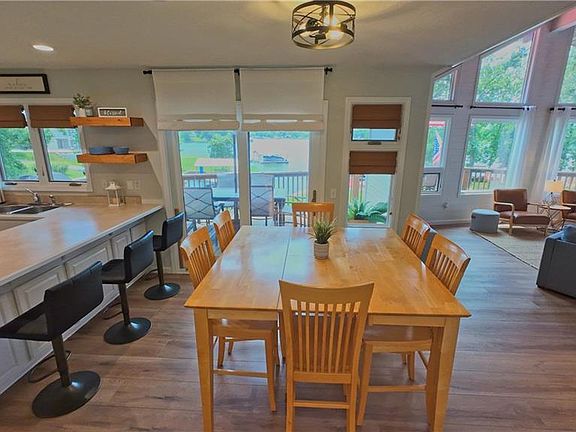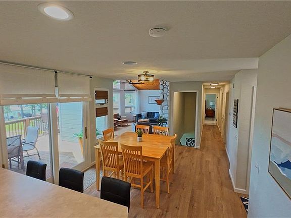 Perfectly situated to capture stunning sunsets over the main channel, this outstanding property offers 3 spacious bedrooms, a non-conforming bunkroom for extra guests, and 3 full baths. The main level features a beautiful white stone fireplace and pine walls painted white, creating a bright, relaxing lake vibe throughout. The finished walk-out basement opens seamlessly to a gorgeous lakeside patio area, complete with a firepit and great landscaping. Buried propane tank in yard towards the road – perfect for evenings by the water. Enjoy 129 feet of rocked shoreline and a covered single bay concrete dock equipped with a Wet-Step ladder, boat lift, and 1-jet ski port. Located on the main channel with a small inlet along the side, this prime spot offers both stunning open water views and a calmer swim area for safe, peaceful enjoyment. Whether you’re looking to fish, float, ski, or enjoy all water activities, this move-in ready home radiates true Lake Viking vibes of fun and relaxation. Don’t miss this rare opportunity to own a prime waterfront oasis. Schedule your showing today!