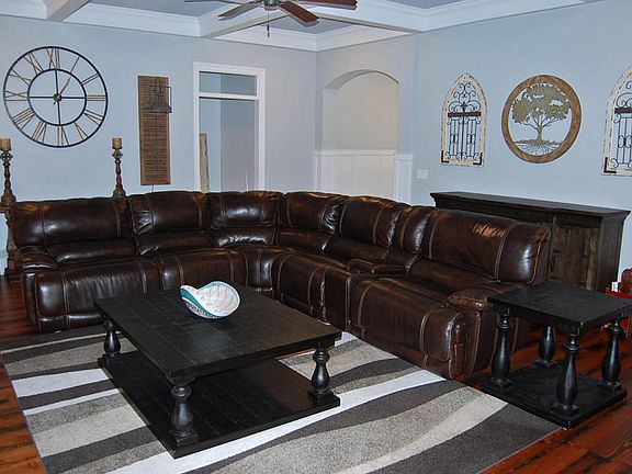 High quality, nearly new home with excellent floor plan. Two bedrooms on the main level and two bedrooms, two baths on the 2nd floor plus flexible use play station and BIG 2nd level game room. High quality flooring, custom shutters throughout, cook's dream gas cooking range with heavy duty vent-hood. Two tank-less hot water heaters, spray foam insulation, separate golf cart garage/workshop/storage area with roll up door, screen porch, rear deck and so much more!