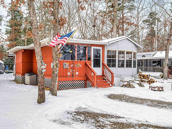 Charming Seasonal Park Model Home in Lazy River Condo Association. Escape to this serene retreat in the heart of nature! Nestled in lush woods, this beautiful park model home offers privacy, tranquility, and modern comforts in the highly desirable Lazy River Condo Association. The community is built around a pristine, spring-fed lake, offering stunning views and a peaceful atmosphere. Property Features: 2 Bedrooms, 1 Bathroom, Spacious Screened Porch: Extending the full width of the home, this freshly re-screened and painted space is perfect for relaxing or entertaining while enjoying the surrounding nature. Includes custom winter boards for added protection during the colder months. Bright, Open Living Space: A sunlit living room flows seamlessly into the eat-in kitchen, creating a warm and inviting space. Outdoor Living at Its Best: Fully equipped outdoor kitchen with a propane grill, refrigerator, flat-top griddle, and sink (not connected). Generous yard featuring a large shed with electricity and a new roof, plus three spacious storage containers for all your needs. Parking: Ample space for two vehicles. Community Perks: Enjoy the benefits of this well-maintained community, where low HOA fees cover water, sewer, access to the pool, gazebo, and a community/game room. Residents can revel in the lakefront views and laid-back lifestyle with seasonal living from April 1 to October 31, and off-season stays permitted up to 21 days per month. Extras Included: Refrigerator on the porch. Golf cart with new batteries negotiable for added convenience and fun. Whether you’re searching for a peaceful nature escape, a seasonal home, or a perfect balance of comfort and charm, this property has it all. Don’t miss your chance to make it your own!