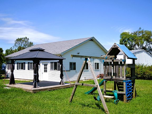 Small town charmer with lots of Garage Space. This 4 bedroom 2 bath sits on 2 lots! 103 and 107 Cunningham. Extra lot is 160x120 with 32x20 2.5 car detached garage. An 18x20 one car detached with lean to. Main garage is 36x36 3.5 car detached. Home features 18 new Anderson windows. Large living and dining room on main floor. Nice covered half wrap around front porch. Large attic area could be finished.