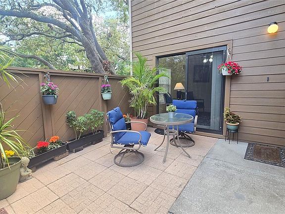 Discover the perfect blend of privacy, convenience, and resort-style living in this beautifully updated, move-in ready 2-bedroom, 2-bath ground-floor condo in the highly sought-after Gleneagles Community. This desirable end-unit features an expansive private courtyard and a separate screened lanai overlooking peaceful wooded views—ideal for relaxing mornings or quiet evenings. Step inside to a bright, spacious open floor plan where the kitchen flows seamlessly into the dining and living areas, complete with stainless-steel appliances. The split-bedroom layout offers exceptional comfort and flexibility: the owner’s suite features sliders to the screened porch, a walk-in closet, an updated ensuite bath with a stylish barn-door entry, and a step-in shower, while the oversized second bedroom—large enough for a king bed and bunk beds—makes an excellent guest room, home office, or private retreat. A full-size washer and dryer are conveniently located in the kitchen’s laundry closet/pantry for added ease. This partially furnished (optional) condo also includes an assigned covered carport, private storage closet, and plenty of guest parking. Gleneagles 1 offers an unbeatable lifestyle with resort-style amenities, including a heated (and seasonally chilled) pool, tennis and pickleball courts, and a vibrant clubhouse that hosts monthly gatherings. Recent improvements—new roof and new central HVAC(2020), and a new water heater (2023)—ensures peace of mind, as does the fully funded HOA. The monthly fee of $623 covers almost everything: cable, high-speed internet, water, sewer, trash, building insurance, exterior maintenance, roof care, lawn/grounds upkeep, pest control, escrow reserves, and all recreational facilities. This pet-friendly community allows up to two pets (40 lbs. max). Perfectly located next to the world-famous Innisbrook Golf Resort and just minutes from Dunedin, Tarpon Springs, Honeymoon Island, and Clearwater Beach, this condo offers exceptional value, incredible convenience, and a serene Florida lifestyle. Be sure to view the walk-through video and interactive 3D tour—this one is a must-see!