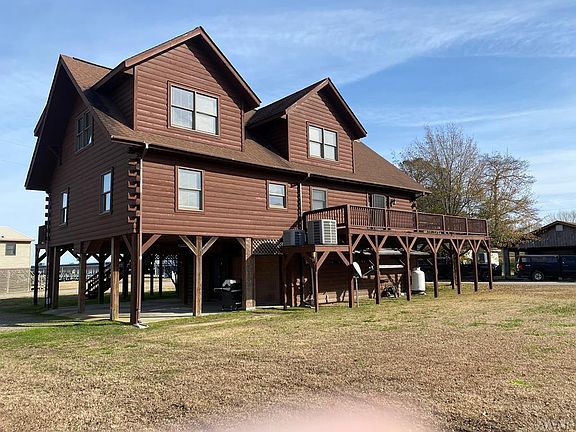 Incredible water views without the cost of bulkhead maintenance. This spacious log cabin style home features a beautiful stone fireplace and living areas on both floors. Decks and covered entertain areas plus a workshop and garage add to the functionality of this home or cottage. Only 6 miles from Historic Edenton, NC where desirable shopping, restaurants, and medical/hospital are available. This home is perfect for retirement, or work from home living.