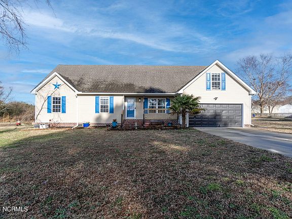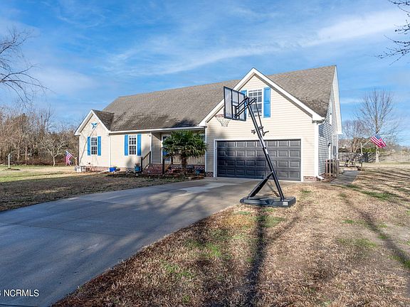 Welcome to Moyock! This Beautifully maintained ranch is located on a cul-de-sac situated on almost an acre of land. Enjoy this open concept home with vaulted ceilings and plenty of natural sunlight. The farmhouse style kitchen features granite countertops, newer appliances, huge pantry and pass through window and EIK. Primary bedroom has a large walk-in closet, vaulted ceilings and an updated bathroom with dual sinks. Updated hall bathroom has tile walk in shower. This home has custom built-ins, neutral fresh paint, a finished room over the garage with a half bath and closet, and a spacious sunroom overlooking the back patio and large backyard. With just over 2000 SF of living space, 4 bedrooms, 2.5 baths its a great place to entertain! No HOA! House is ready to move in!