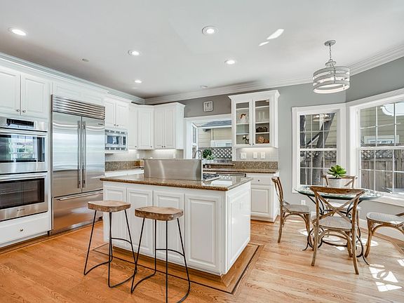 A jewel in the City of Good Living, walkable to so much. Nestled on a quiet San Carlos street, this 4BD/2.5BA 2-story charmer w/ wrap-around porch is a joy. Hardwood floors stretch through large airy living spaces and lit by bay windows. Formal dining room has French doors to backyards new entertaining oasis w/ al fresco kitchen & built-in gas firepit as well as glass doors to open concept kitchen/family room & breakfast nook. Remodeled kitchen features Thermador 5-burner stove, Dual Bosch ovens, new Sub-zero fridge. Upstairs, Primary Suite entices with vaulted ceiling + hill views. Primary Bath wows w/ heated floors, soaking tub & double vanities. 3 guest rooms, all w/ vaulted ceilings, and a completely renovated guest bath w/ built-in steam shower & heated floors line upstairs hall. 2-car garage. Walkable to Laurel St for steak at Town, pizza at Paxtis or cone at Gelataio. Top San Carlos schools are blocks away, as is popular Burton Park. Caltrain in walking distance.