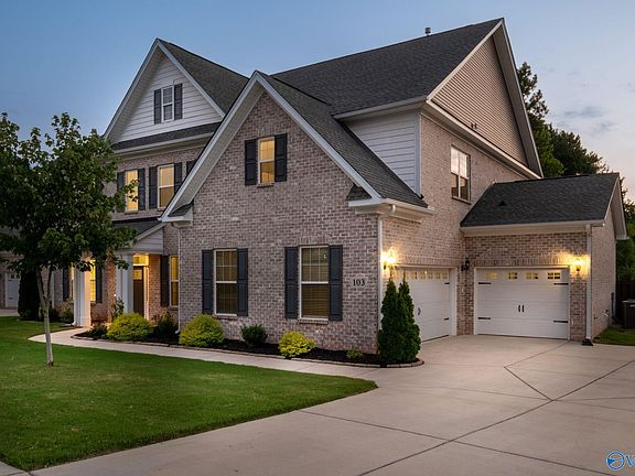 In-Law suite included in this 5 Bed, 5 Bath plus Bonus Room Madison City School District Executive Home. The Chef's Kitchen offers quartz and granite counters, gas cooktop, stainless appliance with bluetooth speakers and large pantry. A custom dining room with coffered ceilings and chair rail is directly across from the private home office with arched entry. Master Suites on both levels each offer trey ceiling, custom shower, dual vanities and walk-in closets. The second level suite offers a cozy fireplace. Three additional bedrooms plus a bonus room, two bathrooms, and an additional laundry complete the second floor.