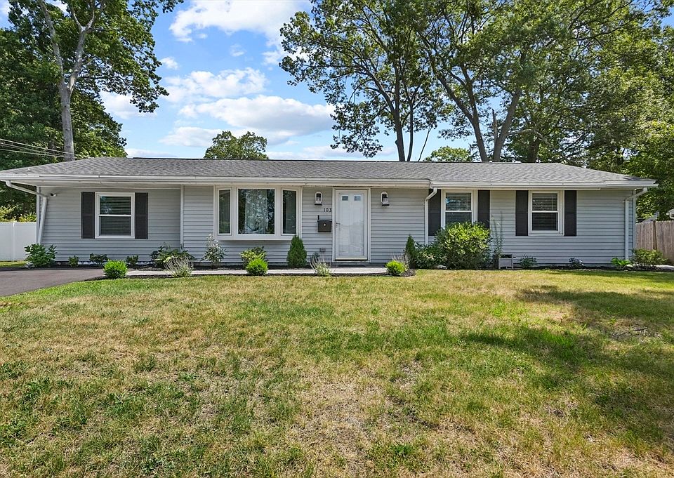 Step into this beautifully renovated ranch style home, where every detail has been thoughtfully upgraded to offer comfort, style, and functionality. Located on a newly paved quiet street in Brockton 's East Side, this 3-bedroom, 1 bath home is the perfect blend of modern design and cozy charm. Inside, you'll find an oversized kitchen with quartz countertops, a center island, and soft -close hardwood cabinetry-ideal for cooking, hosting or gathering with loved ones. Three generous sized bedrooms, all with recessed lighting. An expansive family room which features cathedral ceilings, recessed lighting, and sliding doors that open to a private patio, creating a seamless indoor-outdoor flow. The remodeled bathroom boasts tiled finishes and stone countertops Outside, enjoy a large fenced private yard perfect for entertaining, gardening or relaxing under the stars. A new roof, upgraded plumbing and electrical systems, a new furnace and water heater, makes this one move-in READY!