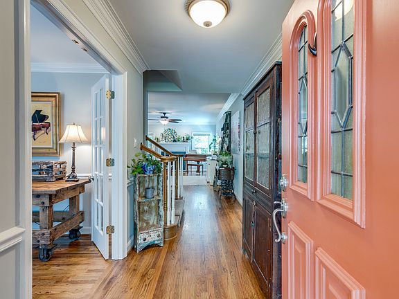 All Brick home with distinctive architectural designs. Main level has exquisite hardwood floors. Living Room/Family Room has built-in entertainment center & FP w/gas logs. Beautiful kitchen with huge work island & abundance of cabinetry & large walk-in pantries. 4-BRs, Master on main level. New carpet in 3 upstairs bedrooms, hall and stairs. Well landscaped yard w/irrigation system & black wrought iron fence in back yard..