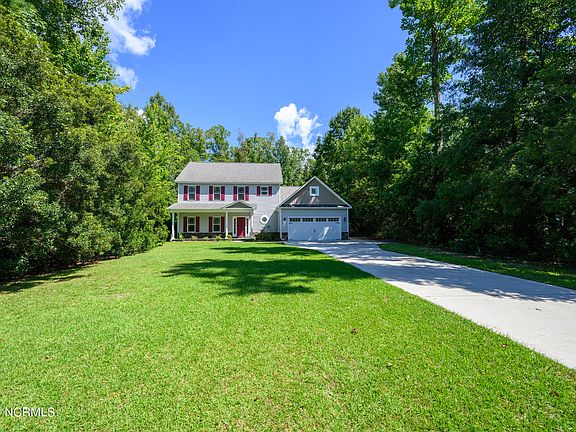 Welcome to 103 Didrikson Drive in the serene Carolina Pines subdivision, ideally located near historic downtown New Bern, MCAS Cherry Point, and just a short drive to the Crystal Coast. This charming 2,500 sq. ft. home offers 4 bedrooms, 2.5 bathrooms, and a peaceful ambiance in a friendly neighborhood. Make your way onto the inviting rocking chair front porch and into a welcoming foyer, leading to a spacious living room with elegant crown molding, chair railing and a cozy fireplace, all flowing seamlessly into the dining area and kitchen. The modern kitchen boasts stainless steel appliances, an island for extra prep space, a pantry, granite countertops, and crown molding for added charm. A mudroom and laundry room, plus an additional storage pantry, lead you to the attached 2-car garage with extra storage space. Outside, enjoy the covered back patio overlooking a large backyard complete with a 16x10 detached shed and raised garden beds—perfect for relaxing or outdoor projects. The first-floor primary suite features crown molding, a luxurious en suite bath with a dual sink vanity, walk-in shower, separate garden tub, and a walk-in closet. Upstairs, a large landing with a ceiling fan offers flexible space, along with three more generously sized bedrooms and a walk-in attic. With thoughtful upgrades like a whole-home generator, gutters, and ample garage storage, this home is both practical and picturesque. Come experience the perfect blend of comfort, style, and convenience. Contact us today for your private showing!