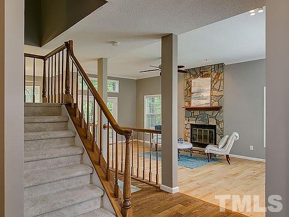 Move right in to this lovely 2-story cul-de-sac home in the heart of Cary - the freshly painted interior and exterior, bright and airy kitchen with new light fixture and stainless appliances (including refrigerator!), newly refinished floors in the expansive family room with wood-burning fireplace, spacious master suite, and deck overlooking the wooded backyard all combine to welcome you home! HVAC units - 2015; gas water heater - 2016; washer/dryer and new Google Home device convey.