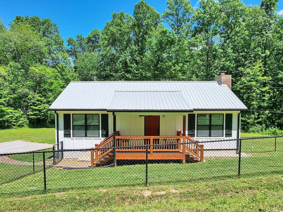 Escape to serenity in a private 5-acre oasis! This charming 2-bedroom, 1-bathroom house offers a secluded haven for those seeking tranquility and outdoor adventure. With a fireplace in the living room and a durable metal roof, enjoy a relaxing warm atmosphere as well as added peace of mind during all weather. The partially fenced-in front yard provides a safe and secure space for pets and children. Imagine waking up to the sound of rustling leaves and birdsong, heading outside to a panoramic view of your private 5-acre paradise. Spend your days exploring the lush forests, fishing in the sparkling creek, or simply relaxing on the back deck as the sun dips below the horizon. With it's secluded location, ample outdoor amenities, enchanting natural surroundings, and a variety of nature's beautiful wildlife, this property is the epitome of rural tranquility!