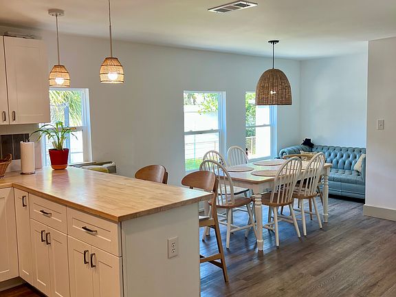 Great beach house with private fenced backyard, large deck, dedicated 2-3 car parking, trash care included. House just drive 3 min from the beach and 3 min from Hutchison Beach Elementary School, Less than 7 minutes to Pier Park! Living room with a sofa . Home Features: 3 bedrooms / 2 bathrooms Open-concept living and dining area with natural light. Washer and dryer hookups. Quiet, family-friendly neighborhood.