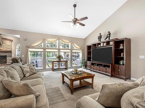 Immaculate and beautiful 3BR, 2.5BTH great rm ranch that is ready for you to call it home! This home offers beautiful curb appeal w/brick & vinyl front, lush landscaping w/irrigation sys, newer roof & 3 car garage. Elegant entry foyer w/gleaming HW floors opens to the formal dining rm & spacious great rm w/tall vaulted ceilings & wall of windows. The designer kitchen has custom cabinetry, granite countertops, tile backsplash, bkft bar, SS appliances, walk-in pantry & hearth rm w/gas FP & door leading to the patio looking out the level fenced yard perfect for outdoor enjoyment. The luxurious master suite offers a walk-in closet & deluxe BTH w/his & hers vanities, LG soaking tub & sep shower. 2 add'l BR, den, full BTH & laundry complete the main. The finished LL is perfect for entertaining w/family rm, LG rec rm w/bar, bonus rm & bath giving you 3590+SF of living space! New HVAC & water heater! Perfect location w/easy access to major hwys, great schools, shopping & dining. A MUST SEE!