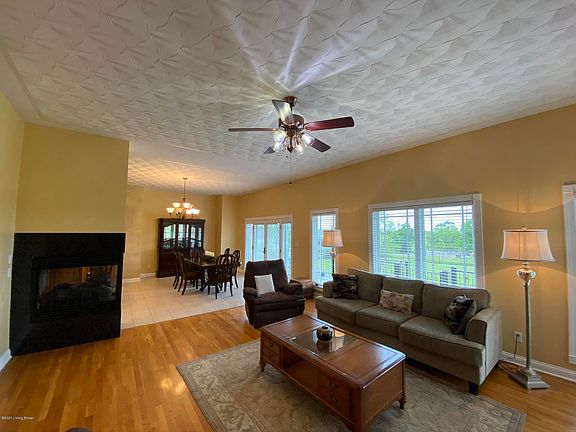 Tullamore greets you with this lovely Frank Lloyd Wright designed spacious 3BR 2BA prairie style home with two car attached garage.Home offers over 2000 sq. ft. of living space with highly desirable open concept floor plan. Amenities include lovely hardwood, 9 &10 ft. ceilings,stainless appliances & three sided gas fireplace that can be enjoyed in the Living Room, Dining and Kitchen. Spacious Master suite features double vanity sinks, Jacuzzi tub & shower. Bedroom off foyer perfect for office or nursery. Nice third bedroom on other side of home. Great rear deck & iron fenced yard are great for outdoor enjoyment. Minutes from all the amenities of Historic Bardstown & great commute location via the BG. Near shopping, schools and restaurants.
