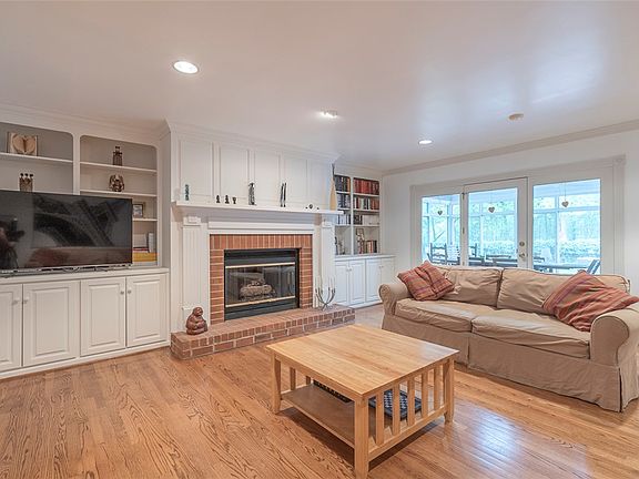 Nestled on a private cul-de-sac, this spacious home offers versatile living. Enjoy hardwood floors throughout the main level, featuring a living room with a gas log fireplace and built-ins, a formal dining room, and a large eat-in kitchen with a keeping room flowing into an all-seasons porch. The main level boasts 4 bedrooms and 3 baths, including a flexible office/in-law suite with private bath access and a primary suite with hardwood floors, walk-in shower, and jetted tub. Upstairs, discover a bonus room with an attached office space and a separate gym area (unheated/cooled) with walk-in attic access – prime for finishing! Relax on the patio overlooking the private backyard. Abundant storage throughout, plus a 2-car garage. Ideally located near shopping, dining, medical facilities, and schools.