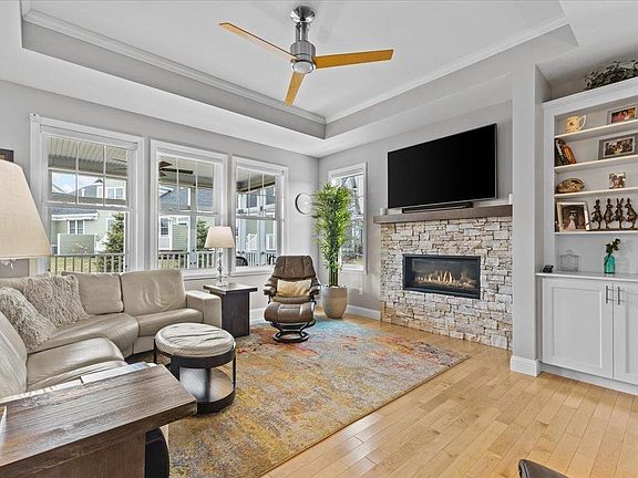 Meticulously maintained Finney Crossing single level home within a short walking distance to a community pool, tennis courts, clubhouse, restaurants and retail stores. The home has an open floor plan with 9 foot ceilings and many upgrades from the standard home. The coffered ceiling entry leads to the living room features tons of natural light and a gas fireplace with gorgeous stone surround. The kitchen overlooks the living room and features a large kitchen island with quartz countertop, stainless steel appliances and lots of cabinet and draw space. Just off the kitchen is the butler's pantry with a wine fridge and additional storage. On your way to the enclosed three season porch, which has Trek's decking, you will find the home's dining nook featuring remote controlled shades on the large windows looking out on the spacious lawn area. The home has three bedrooms. The en-suite master bedroom has a jetted tub, double vanity with granite counter, tiled shower and two large walk-in closest. The second bedroom is also on the main level as is the main level's guest bath. The first floor is completed with an office fearturing custom cabinets and a mail slot. The lower level has a living room, bathroom and bedroom making it perfect for guests or in-laws. There is unfinished storage space in the basement. The home also has a spacious two car garage and covered front porch. This home has everything and the neighborhood has all you could want. A great find and a must see.