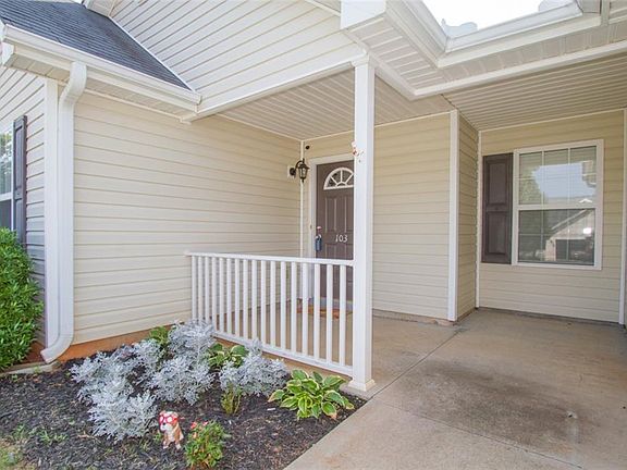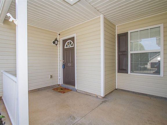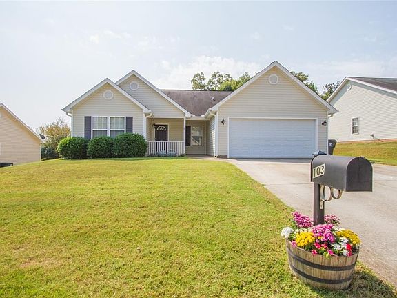 Walk to TL Hanna from this 4 bedroom home. 100% USDA financing for qualified Buyers AND no HOA!! Property and its location has so much to offer. One level ranch style home with low maintenance exterior due to all vinyl siding and trim. Outdoor space features a patio off living room and protected with mature landscaping and newly installed privacy fence. Entry to home from covered porch area leads to large kitchen w/ all appliances to remain and is open space to eat in / dining area. Large living room w/ hard flooring and soaring ceilings. Needing another great feature? Ever popular split bedroom floor plan. Master bedroom area w/ walk in closet, double sinks, soaking tub and separate walk in shower. Two bedrooms at other end of home share full hall bathroom. Fourth bedroom situated off living room and could be used as an office space if bedroom not needed. Perfect home and location for those wishing for smaller subdivision.