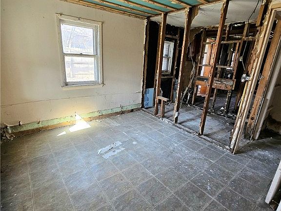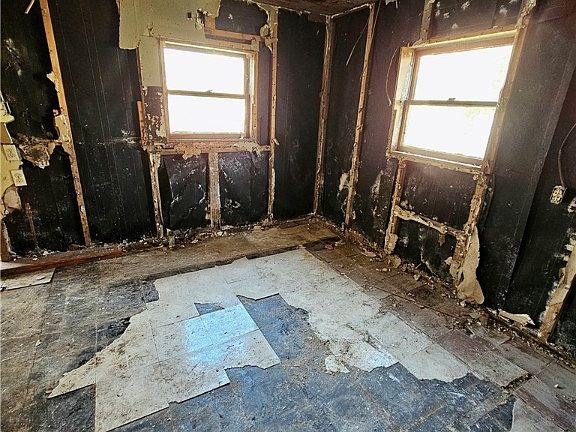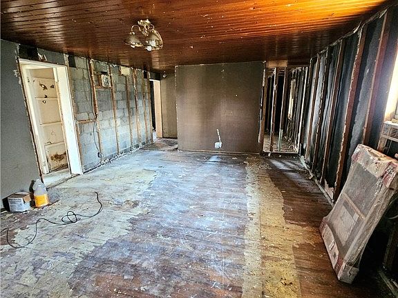 Step inside to discover a blank canvas awaiting your creative vision. The interior of the home has been mostly gutted, offering a clean slate for customization and renovation.