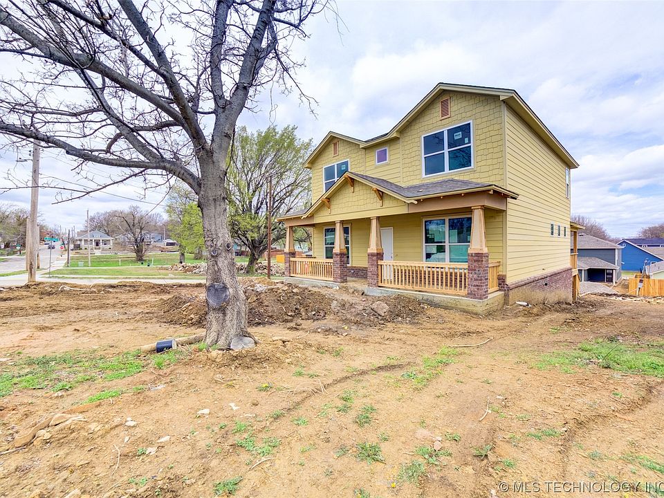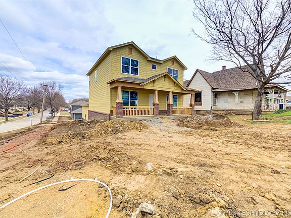 Introducing a stunning new construction home in the heart of Tulsa, Oklahoma, just steps from Historic Greenwood and the Tulsa Arts District. This beautiful home boasts a spacious 1,873 square feet of living space, complete with 4 bedrooms and 2.5 bathrooms. As you step inside, you'll immediately notice the elegant and modern finishes. The kitchen features sleek quartz countertops and a large island that opens to the spacious living room. The staggered farmhouse cabinets provide ample storage space, making this kitchen perfect for those who love to cook. And with brand new appliances, meal prep, and cooking will be a breeze. Satin nickel finishes throughout the home add a touch of luxury, while the full guttering and beautiful landscaping provide practicality and curb appeal. A 6ft cedar privacy fence with galvanized steel posts surrounds the property, ensuring maximum privacy. The downstairs area is perfect for entertaining guests or simply relaxing with family. With both a family room and a bedroom that can be used as a study, there is plenty of space for everyone to gather. Upstairs, you'll find three bedrooms, providing ample space for a growing family or guests. The large front porch is the perfect spot to relax while taking in the charming neighborhood surroundings. Overall, this beautiful new construction home is a must-see for those looking for a charming home in the heart of Tulsa.