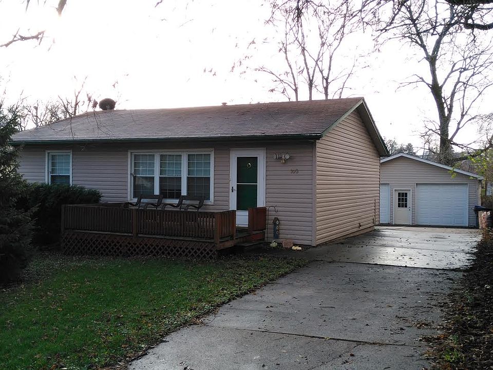 Welcome home! At 800' this is a great first-time home buyer home that offers many great features! Walk in to a warm and inviting living room with new ceramic entry and new carpet thruout. The eat-in kitchen has been recently updated with laminate floors and beautiful countertops. A newer sliding door to the deck and fenced in yard makes it easy to keep an eye on pets or kids while they're playing outside. 2 bedrooms and 1 bath round out the well laid-out first floor. A great partially finished basement with a family room and 3rd bedroom is a great place for a tv to watch the game or play the xbox! Ample storage in the basement as well. A huge detached garage offers plenty of space for cars and toys! This solid ranch has many other updates such as new furnace & A/C in 2016!