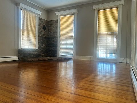Beautiful and very spacious 2BR 1BA Two Story Duplex in a great location. Downstairs features HW Floors Large Living room- Kitchen and Formal Dining Room, Upstairs features HW Floors 2 Large bedrooms and a Large Bathroom. Outside has parking and patio to entertain. Basement has a washer/ dryer hookup. Landlord takes care of water, sewer, trash collection and maintains yard maintenance and snow removal. Sorry no pets or smokers allowed.