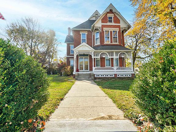 Don’t let the History of this house fool you, it is large, solidly built, spacious and has tons of storage with no restrictions on how you want to update, remodel, or add to the home. With 3 Bedrooms upstairs and a Master Suite on the main level the possibilities are endless for a larger family, home office, craft rooms and more. The main rooms all have huge 6-foot windows allowing for tons of natural light and the house has so much of the period beauty with a gorgeous foyer and free hung stairway, 4x10 pocket doors between two of the living areas and beautiful trim and finishes throughout. Completely restored in the early 2000’s, all plumbing and electrical is updated to modern standards. The kitchen features ample counter space and a beautiful wall of cabinets. The present owners have further invested in nice appliances, utility upgrades, and kitchen updates. Water and natural gas have been extended to the large, detached garage/shop area with electric and sewer for even more possibilities. The large unfinished basement and huge attic area add even more storage to the property that sits on half a city block. The 13-inch-thick brick walls outperform most insulation systems for very reasonable utilities and have shown no sign of movement or settling. The Dr. Nelson Wilson House is a Historic treasure. The combination of Queen Anne and Eastlake styles make it a one-of-a-kind Victorian beauty that can be your home for a very long time.