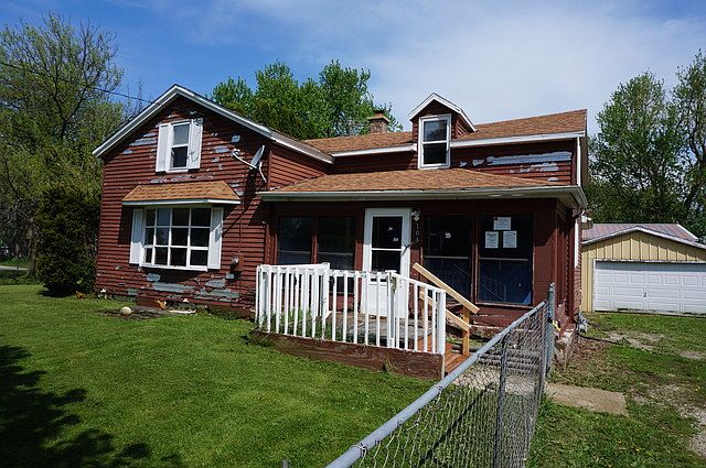 Opportunity is knocking! Sellers were in the middle of remodeling and an opportunity arose for them so they have decided to sell, making THIS an outstanding opportunity for YOU! This spacious home needs your creative touch to finish it off to make it your home. Located on over 1/2 an acre, this corner lot has an oversized two car garage attached to a large 28x28 building. The building has an 11'x10' high sliding door, with steel walls(2017) and tons of electrical through(2017), a perfect "shop" setting! The newly poured concrete patio in the back will be the perfect spot to enjoy the sunsets. There are several improvements to the exterior including the removal of several trees, chain link fence, and driveway repair. They installed an inground fence for dogs, buried a new gas line from the house to the shop(just needs to be tied in). Some of the interior updates include: furnace 2016, A/C 2021, appliances within the last 5yrs, and some canned lighting. Enjoy the peaceful country in this quaint town!