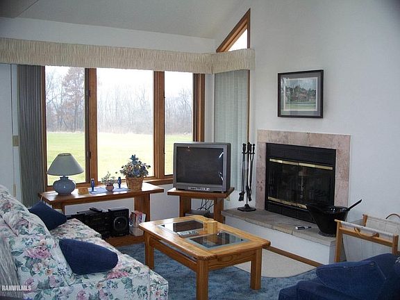 This Hickory Run Golf Villa is in the heart of the resort core and close to all the amenities of Eagle Ridge Resort & Spa and The Galena Territory. Very close to the East Course Pro shop and overlooks the first hole tee to green. This charming 1 Bedroom 2 bath villa features an open floor plan with plenty of windows and sky lights that flood the home with natural light. The master bedroom suite features a luxury master bath with separate shower and whirlpool soaking tub, double vanity and sky light. The great room features a vaulted ceiling, wood burning fireplace and sliding glass doors that lead to the deck with fairway views and beyond. The exterior of the Hickory Run townhomes combines natural cedar siding along with local limestone accent pillars. The home is being sold unfurnished. Sale subject to GTA document transfer fee.