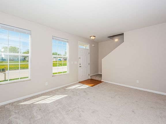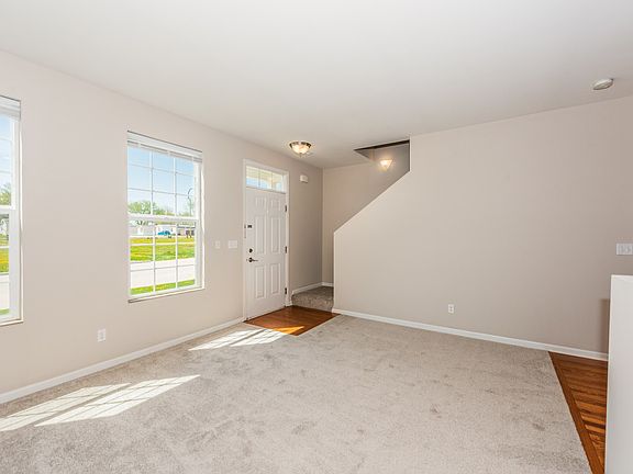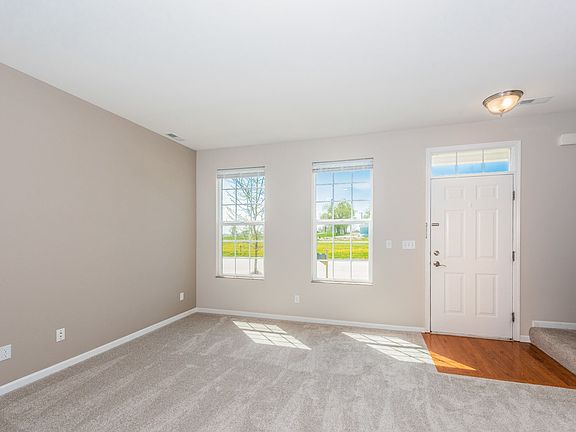 Townhome with modern colors through and through! You will love the upgrades this unit has. Hardwood floors in kitchen, 42" cabinets and black appliances. Main level has a half bath. Huge bedrooms and each one has a private bath. Master suite has an oversized Walk-In closet and a separate smaller closet. Bedroom two has a private full bath and large walk in close. There's also a second floor laundry area. Lots of closet space in this town home. Home has been freshly painted and new carpet in living room, stairs and landing. Roughed-in plumbing in basement, 2 car garage, and more. It's too nice to pass up.