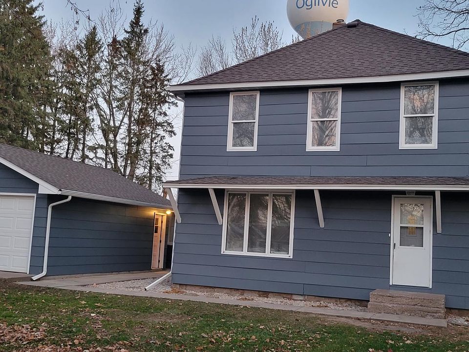 Four bedrooms - one on the main floor - and two baths; often hard to find. The home has been completely refurbished inside and out, with fresh paint, wall textures, flooring, cabinets and appliances, electrical and plumbing fixtures. The rooms are large and inviting. Kitchen is open to the dining and living areas and has its own great breakfast nook looking out to the back yard. The three-season porch/breezeway is right off the eat-in kitchen. Garage has an enclosed and insulated workshop area you'll love. Close to Mora to the east, Milaca to the West and Hwy 47 takes you right up into the heart of lake country.