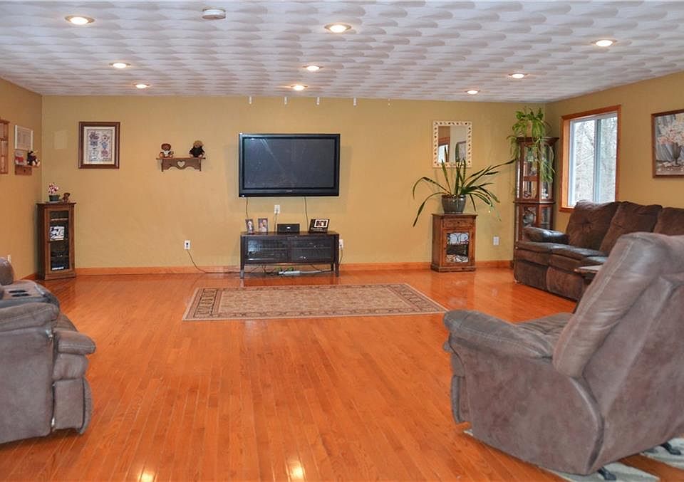 Everything you've been looking for! Nestled in back of a beautiful neighborhood , this large 3 bed 2 full bath home has 1.37 acres of both open space and woods! Open floor plan with a huge living room with french doors, sliders to balcony, hardwood floors, cathedral ceilings, lots of room for watching the game, holiday dinners, gatherings with friends and family! Open kitchen has both formal dining area and seated island for entertaining and casual meals! cathedrals and skylights. Enjoy granite counter tops, spacious cabinets and smart storage and luxury stainless steel sink! Sliders lead to deck. Travertine marble foyer with intricate detail. 3 bedrooms on main level including generous master bedroom and private full bath, double closets, cathedral ceilings, double windows overlooking the wooded back yard. 2 car garage. Gas heat, hot water and central AC!! Lower level has finished common area, full windows, storage area and 2 additional rooms for offices, den, etc!