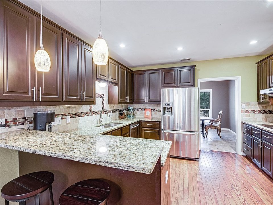 Updated 2 story home on large lot w/owner's suite on the main level. Features: Granite counters, wood floors, tile floors, stainless steel appliances, refrigerator, covered patio, beamed ceilings, stone fireplace, double sink vanity-both bathrooms, French doors, tray ceilings, pendant lighting, tile backsplash, & fenced yard. Community amenities:pool (additional fees), playground, park, lake access. Acclaimed Lake Travis ISD Schools! Owner is a licensed real estate salesperson in Texas.