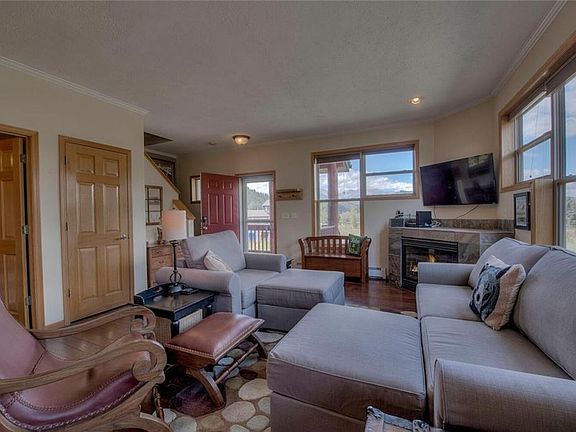 LAKE & MOUNTAIN VIEWS from this lovely 2 BD, 2.5 BA half duplex in Summit Cove! Wood floors on main level, gas fireplace in living room, dining area & windows galore! Updated kitchen - corian counters & SS appliances. Two en suite bedrooms upstairs. Master suite has views, updated bathroom with double sinks, laminate wood flooring & jetted tub. Large, sunny deck. Detached 1 car garage. Quick 3 mile drive to Keystone. bike/rec path right out your door and close to Snake River inlet/Lake Dillon!