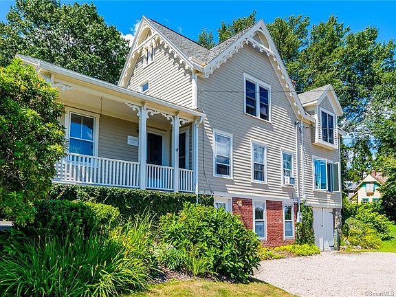 This stunning Victorian home is full of modern updates and classic charm. Featuring breathtaking views of the Mystic River and Beebee Cove. Perfect for those who love boating and kayaking! Feel the warmth of sunshine bathing over you in the rustic feeling sunroom with seven skylights and exposed brick taking you around the corner to the open living room and kitchen where you can check out the state of the art Wolf six range gas stove, naturally knotted mahogany cabinets and gorgeous dark green granite countertops. Follow the red cedar floors down the hall making your way into the formal dining and living room with on-suite office. The top floor of this beautiful estate is where you will find two spare bedrooms and bathroom tiled with blue slate flooring and more natural sunlight coming in through the windows. The master suite is down the hall with a sitting room, full master bath, and bedroom all connected, leading you through the french doors onto the private balcony overlooking the lush gardens and yard. This huge backyard, beautifully landscaped, offers plenty of room for entertaining on the recently re-done TREX deck and Gazebo, rain or shine this is the perfect place to escape the chaos of everyday life. Just a short trip from the town of Noank, Ford's Lobster, tennis, and basketball courts.