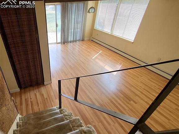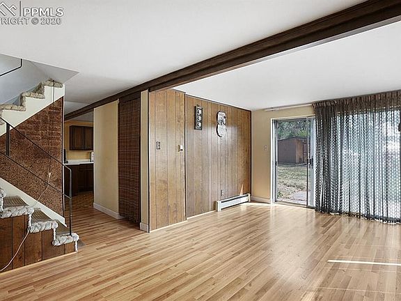 Classic Mid-century modern era home - Great buy very close to UCCS - Efficient, compact, light and bright - Lower level living area walks out to patio and large, fenced backyard - Newer laminate flooring in living room - Kitchen has an adjoining dining nook at garden level - Half bath on lower level (main) for ultimate convenience - Upstairs are 4 bedrooms with hardwood flooring - All bedrooms have clerestory windows for more choice in furniture placement - Upstairs has an updated full bath - Mechanical closet on lower level contains the new boiler installed in February of 2020 with the side-arm water heater - Evaporative window cooler is newer - Attached one-car carport has large 6' x 10' storage closet - Enormous lot of 0.195 acre with most being the fenced backyard with another shed - Great buy! Great potential! See today!