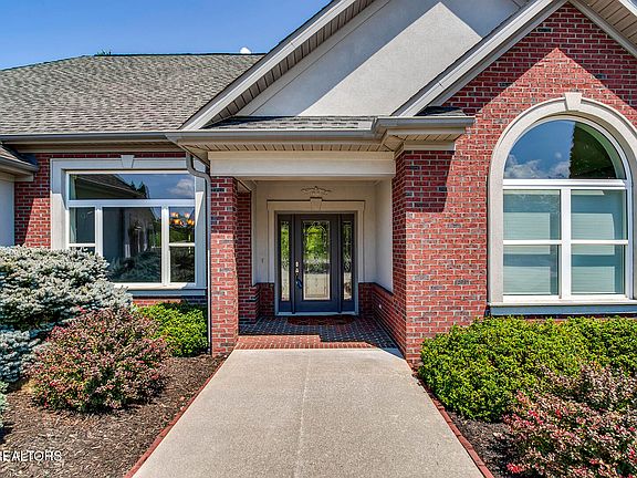 Step inside to discover beautiful hardwood floors, soaring cathedral ceilings, and an open-concept layout seamlessly connecting the kitchen and living areas. The gourmet kitchen showcases custom cabinetry, granite countertops, stainless steel appliances, and a spacious island with a bar area, plumbed for a gas stove. Crown molding graces both the main and lower levels, adding elegance throughout. The main level includes a luxurious master suite with new carpeting, double doors opening to a sunroom, a soaking tub, dual walk-in closets, and separate vanity areas. The sunroom offers serene views of the professionally landscaped backyard, adorned with beautiful dogwood trees and overlooking the Tanasi Golf Course. A guest bedroom, a dedicated office, and a formal dining room with crown molding, . The laundry room, equipped with a utility tub and tile flooring, adds further convenience. This makes up the main level living.